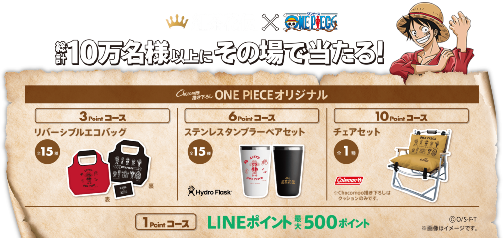 https://c.cocacola.co.jp/kochakaden/onepiece_cp2023/about.html抽選で当たるキャンペーン。