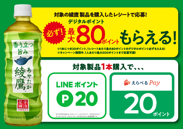 必ずもらえる綾鷹20pt還元キャンペーン
