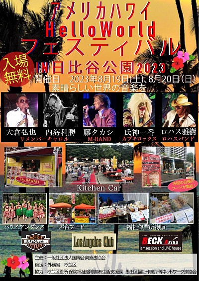 - 8月19日(土)~20日(日)アメリカハワイHelloWorldフェスティバル日比谷公園2023