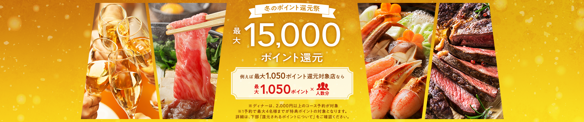 ディナーに関しては2000円以上のコースが対象となっています。