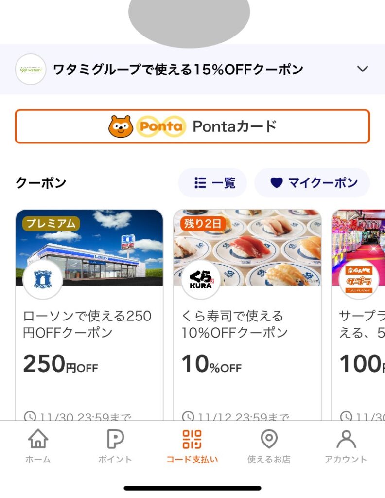 私の携帯で所得したところ決済画面バーコードの下はこのようになっていました。