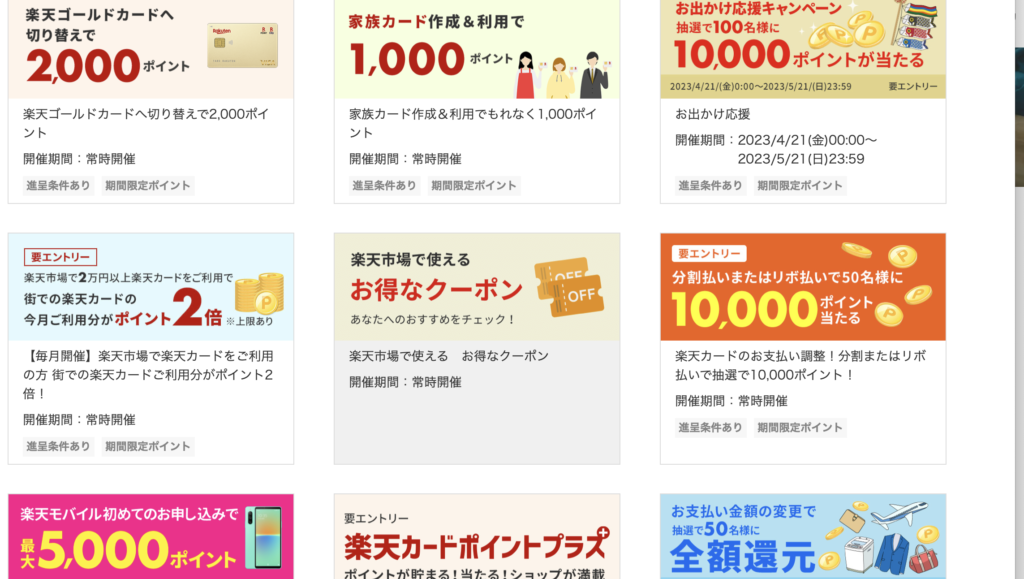 さらにクレジットカードはエントリーしないと対象にならないキャンペーンも多いのでエントリーしてーなど、、