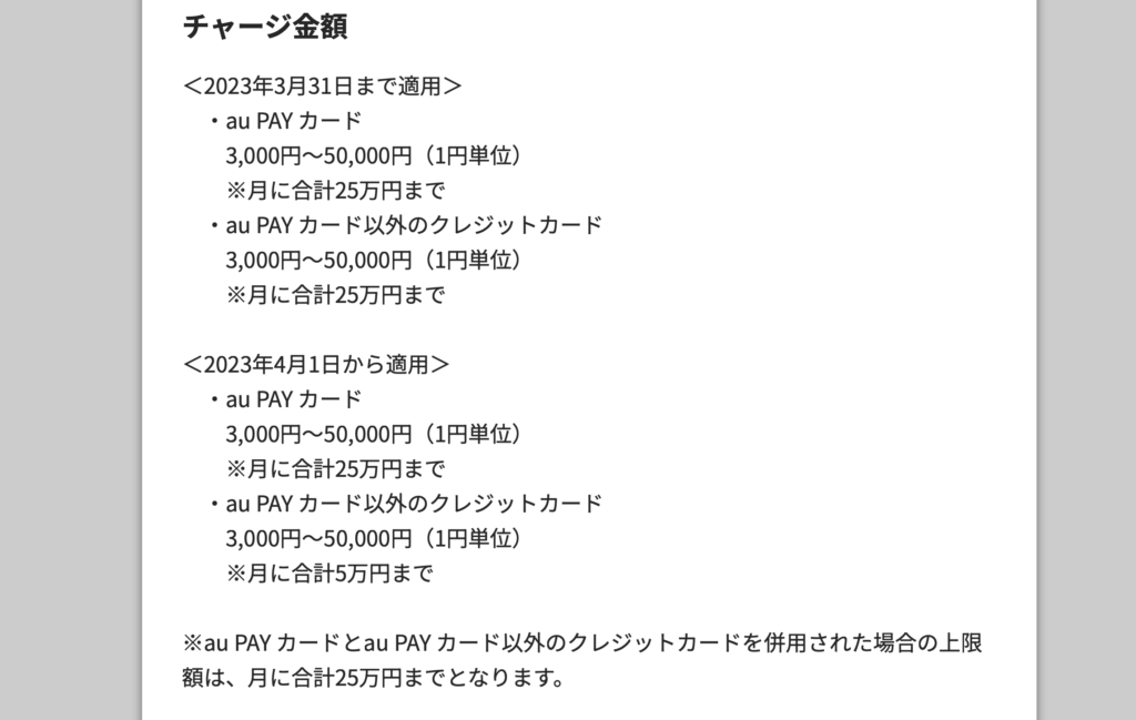 au PAYカードは25万円と多くチャージできますがまさかの還元率0です。