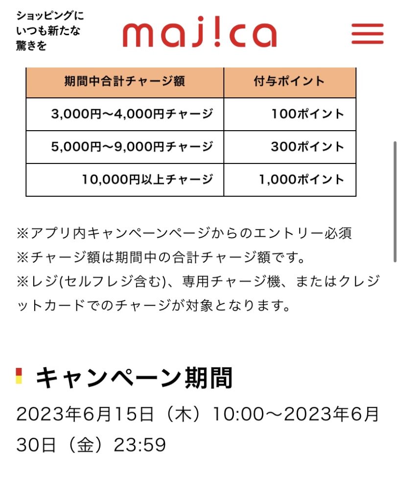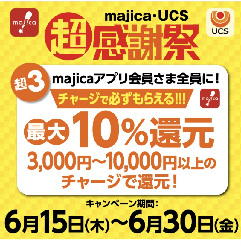 キャッシュレス日付は6月15日-30日となります。超お得なキャンペーンがmajicaで行われます。