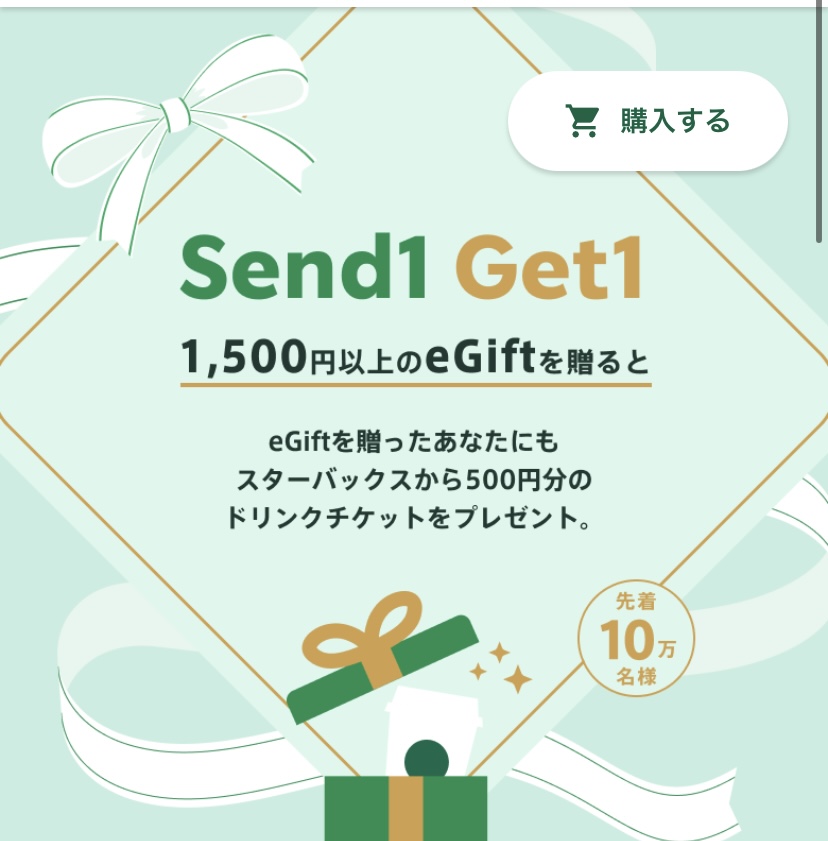 eGiftを1,500円以上購入された方から500円分のドリンクチケットプレゼントのキャンペーンが