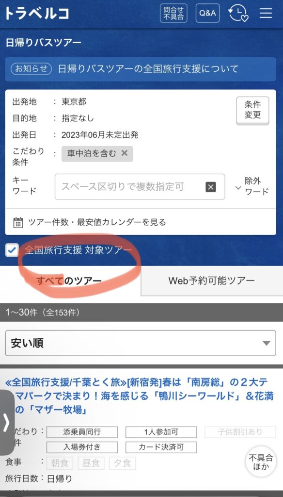 この時期に記事を書くのはおそいですが、私が全国旅行支援のバスツアーを探す際に1番良かった方法をご紹介します。