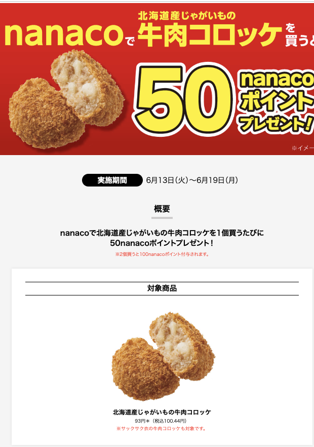 目玉はセブンイレブンでnanacoで買うと半額還元キャンペーン開催。