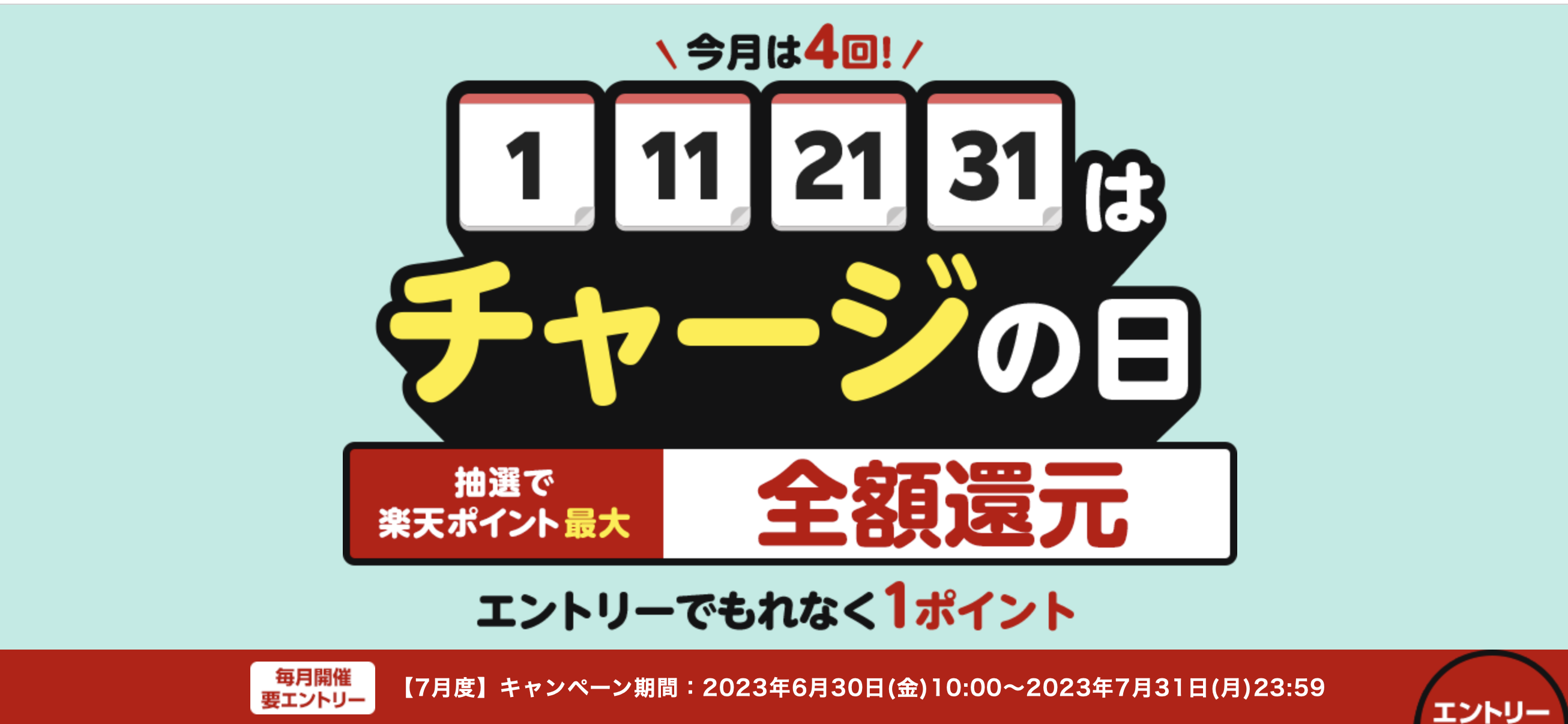 今月もしっかりチャージの日が開催されているので忘れずエントリー&チャージしましょう。