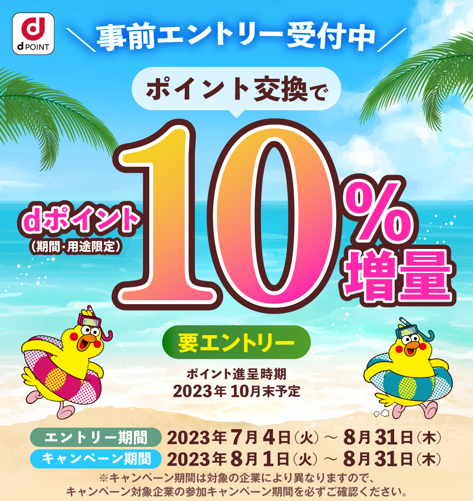 要エントリーでdポイントが10%増量のキャンペーンが8月よりスタート。