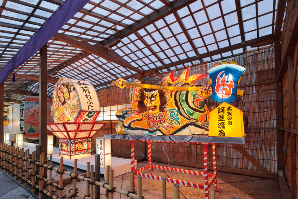 遊就館本館玄関前には毎日弘前ねぶたも展示。