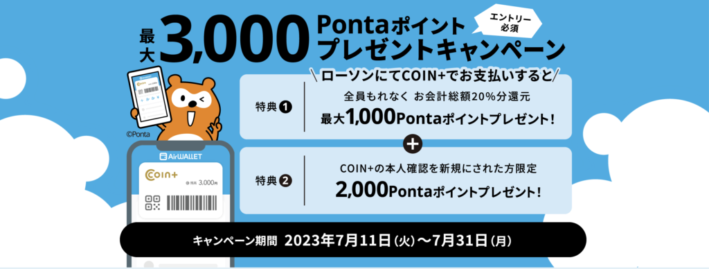 COIN+では条件を満たせば、新規会員登録2000ptもらえる神キャンペーン開催中。