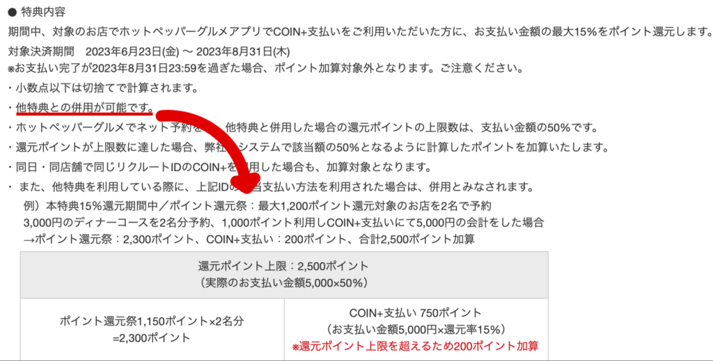 ホットペッパー夏の還元祭り併用okと注意書きにも記載あり!