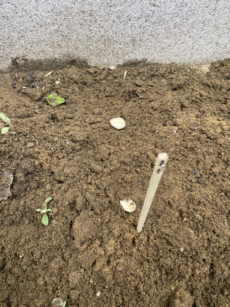 ある程度取れたらネギを植えて割り箸の先にネギと書いて完成。