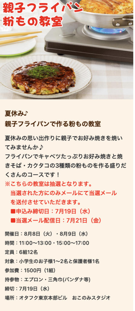夏休みに親子で楽しめる東京イベント!超有名会社が教えてくれるお好み焼き。大人向けもあり!
