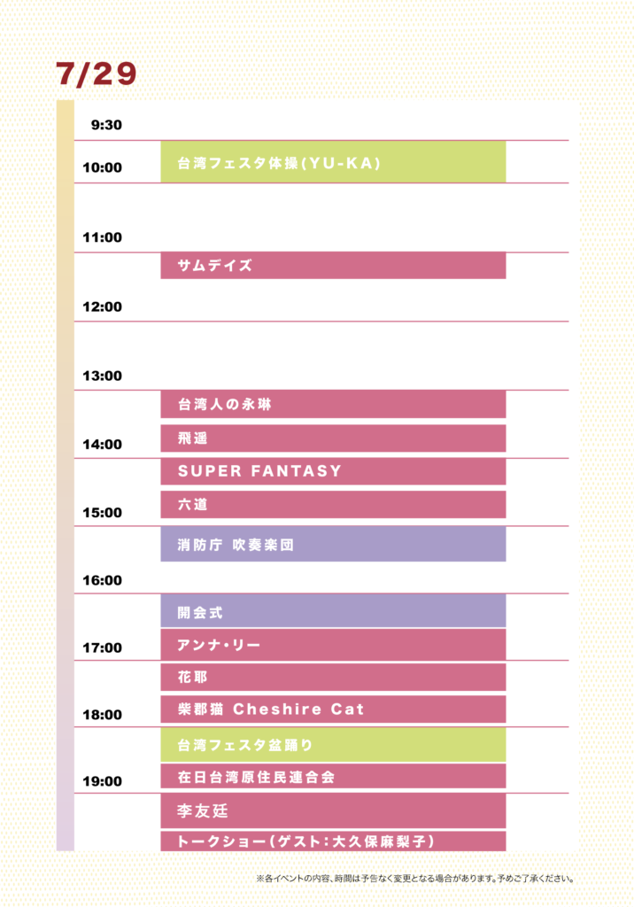 7月28日〜30日 代々木公園広場 台湾フェスタ2023