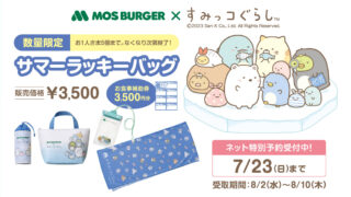 得情報モスバーガー×すみっコぐらしコラボ!サマーラッキーバッグの予約が7月23日まで。 モスバーガー×すみっコぐらしコラボ!サマーラッキーバッグが8月2日-8月10日まで発売されます。 こちらの事前予約が7月23日まで。 料金は3500円。内容は超豪華。2023.07.22得情報